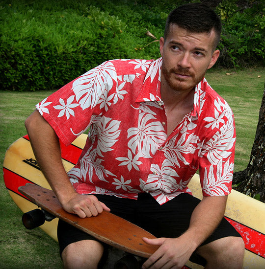 Discover the Paradise Found Men's Tom Selleck Magnum PI Mini Anthurium Hawaiian Shirt, crafted from 100% rayon in Hawaii. Designed with a loose fit and classic details like a notched collar, French placket, matched pocket, and real wood buttons, it...